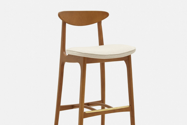 A taller version of the Iconic 200-190 Chair designed in the 1960s. It became an unquestionable icon of Polish design thanks to its elegance. This upholstered chair’s light form and the use of ash with brass details, gives it a touch of nobility and timelessness that continues to impress.