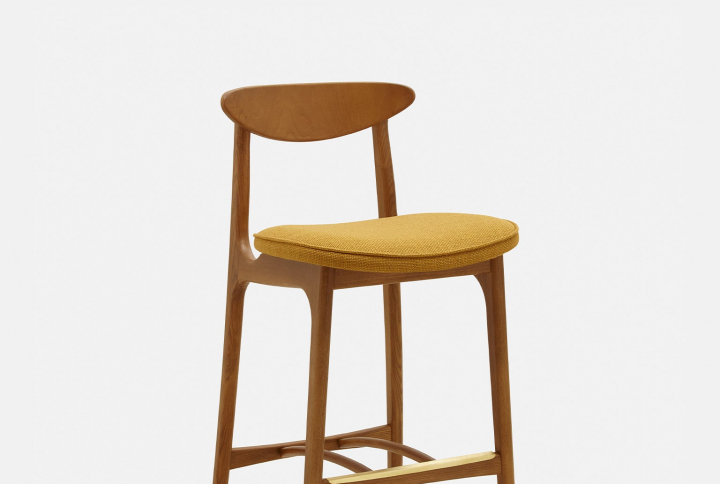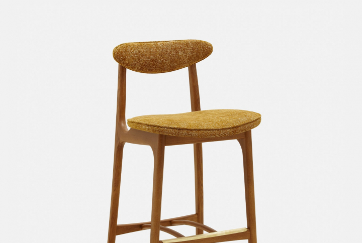 200-190 Bar Stool S/65 Mix Boucle Mustard Dark Wood