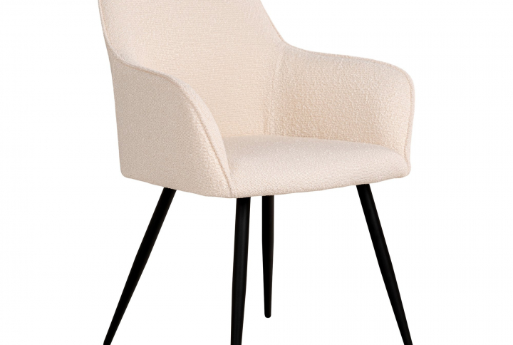 Dining Chair in bouclé, beige with black legs, HN1233